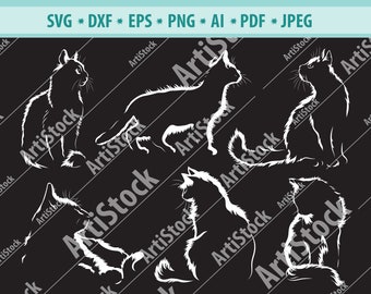 Fluffy Cat Silhouette Svg - All cat silhouette clip art are png format and transparent background.