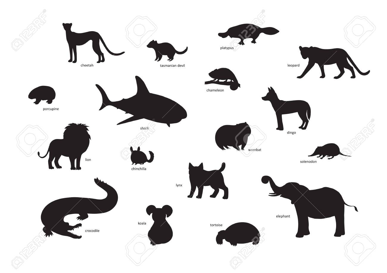Vector Illustration Set Of Cartoon Animal Silhouettes Cheetah Royalty Free Cliparts Vectors And Stock Illustration Image 141784923 - Tasmanian devils silhouettes running from forest vector.